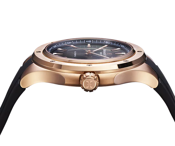 | Fond du boîtier | Boîtier vissé en acier inoxydable 316L avec placage PVD or rose, verre saphir et numéro de série gravé |