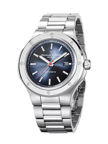 La collection Empire allie savoir-faire de précision et mouvement suisse à remontage automatique, mettant en valeur l’héritage de qualité et d’innovation de Bernhard H. Mayer.