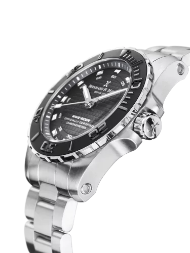 | Mouvement | Chronomètre automatique suisse certifié Sellita SW300 COSC. Entièrement rhodiée, masse oscillante décorée du motif Côtes de Genève, vis bleuies, logo gravé noir |